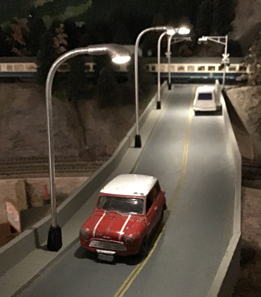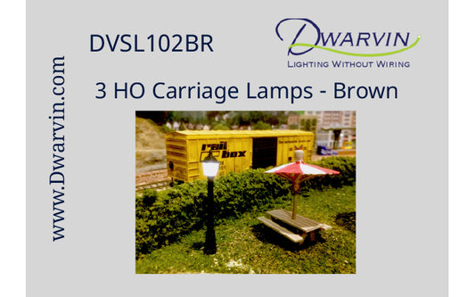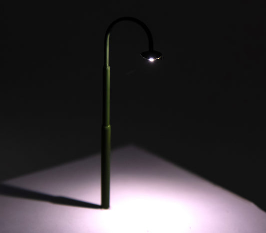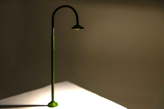 The Dwarvin Street Lamps add interest to any model train layout without being obtrusive. They provide directional lighting, which is what would be seen in streets prior to the advent of the mercury vapor lights that become widespread in the 1970's.
